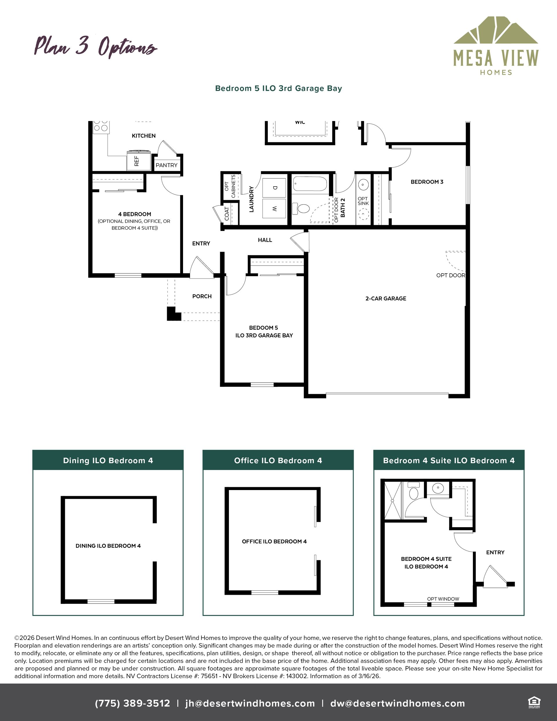 Optional 5th Bedroom ILO 3-Car Garage