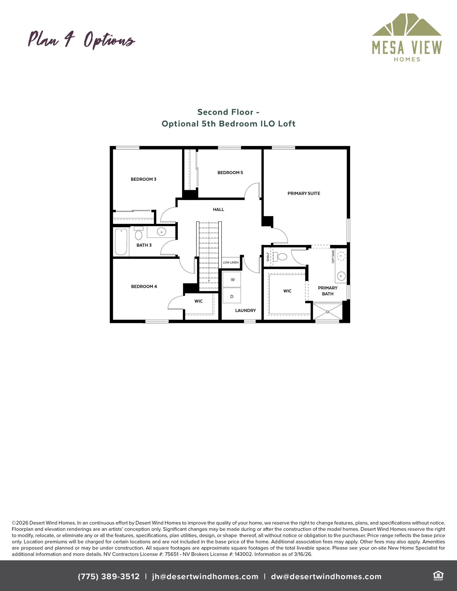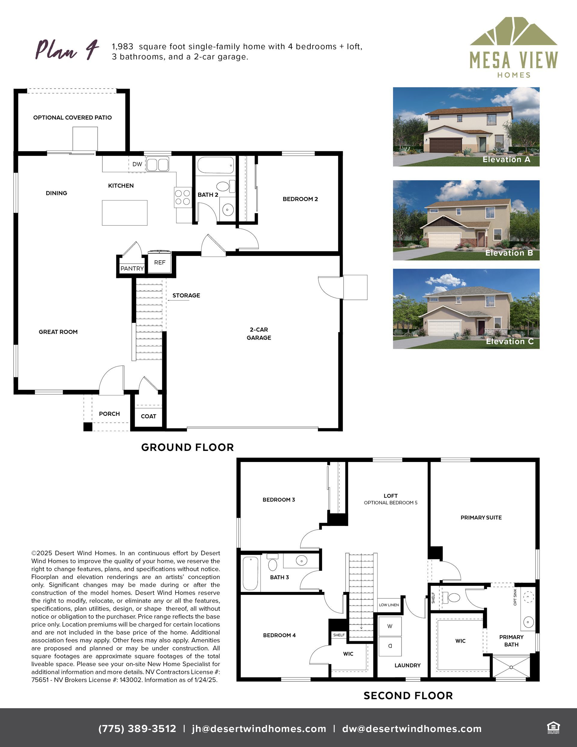 1,983 square foot single-family home with 4 bedrooms + loft, 3 bathrooms, and a 2-car garage. Optional 5th bedroom ILO loft.
