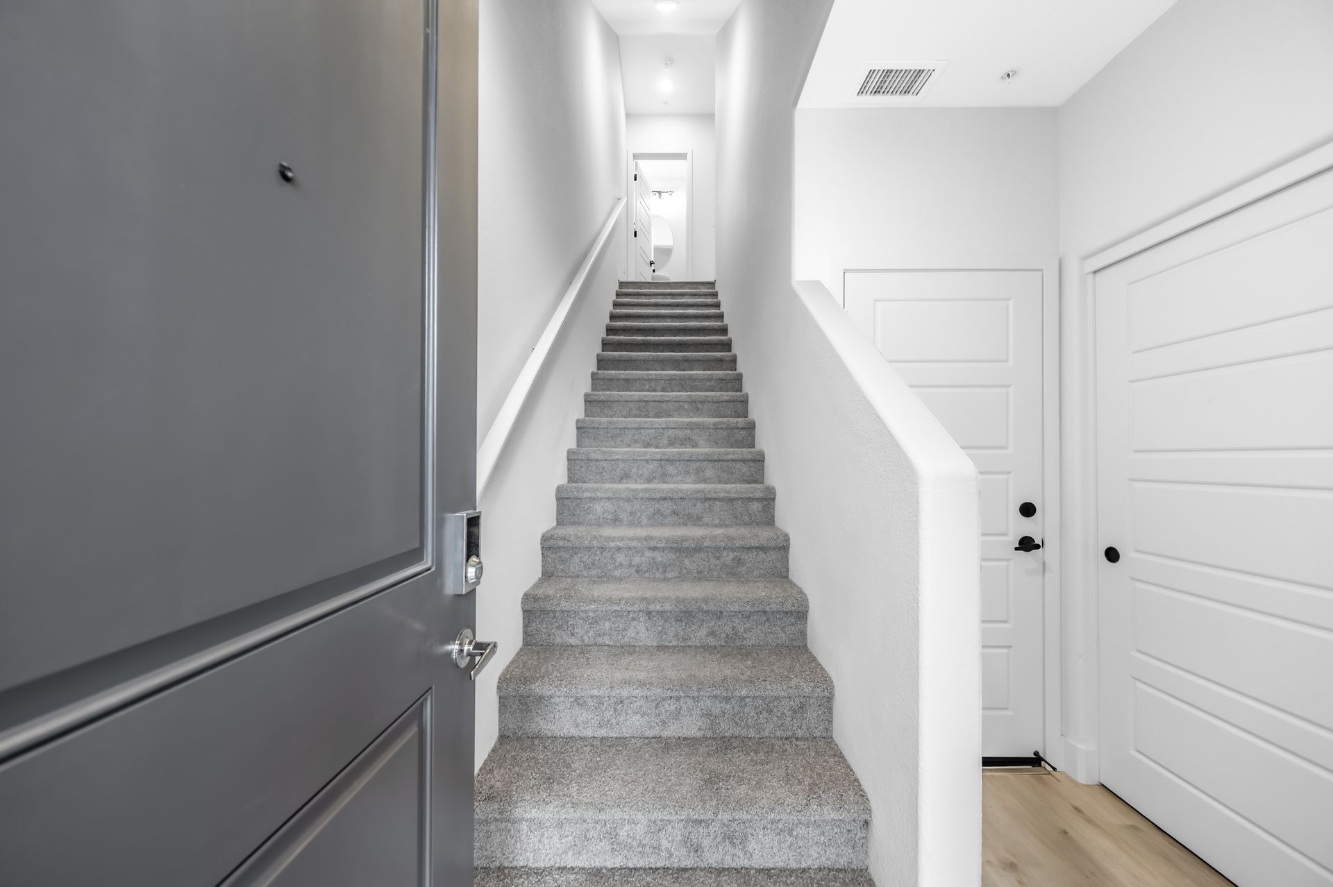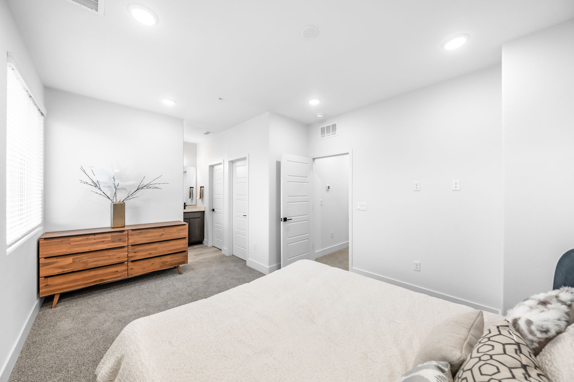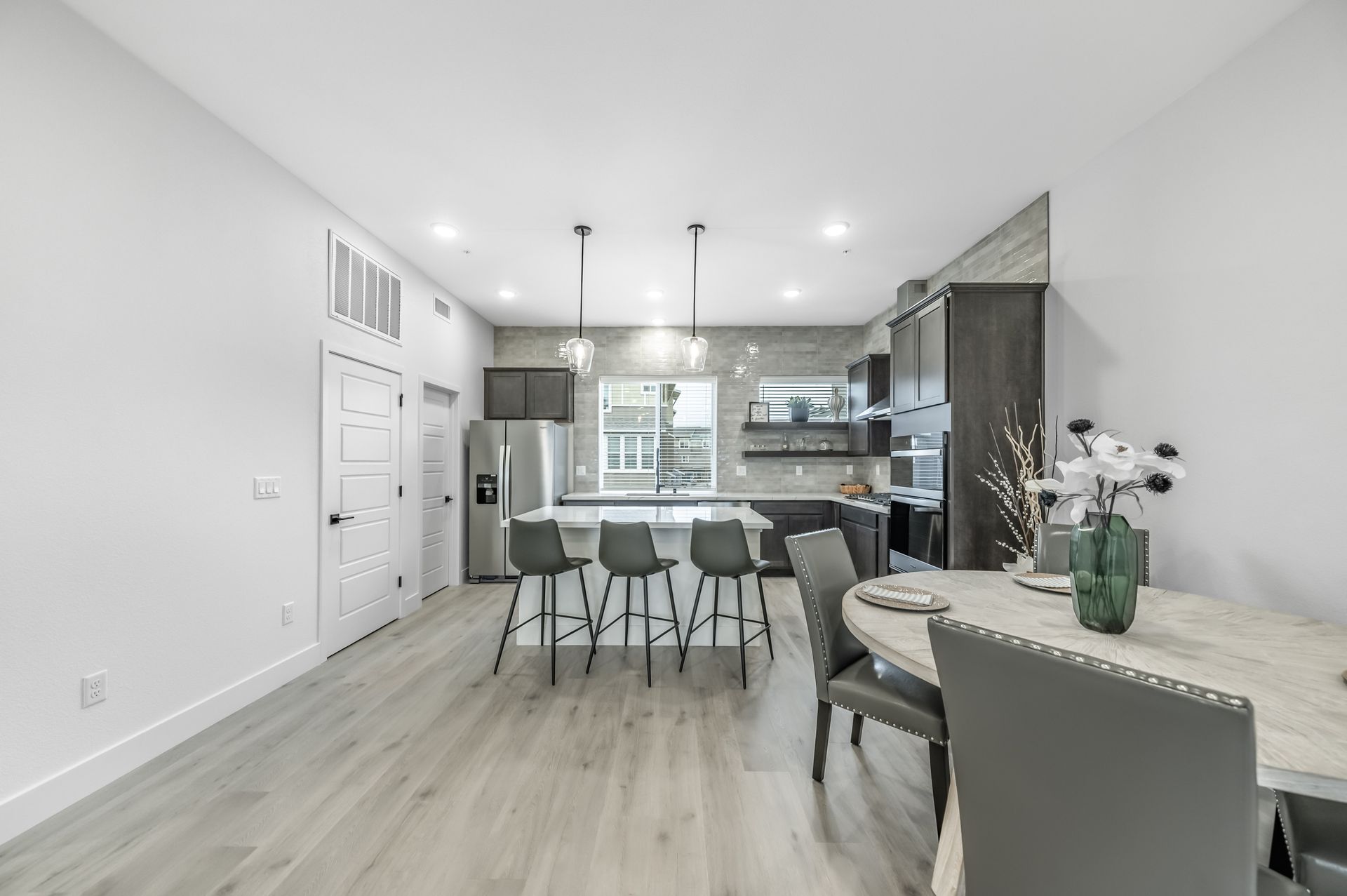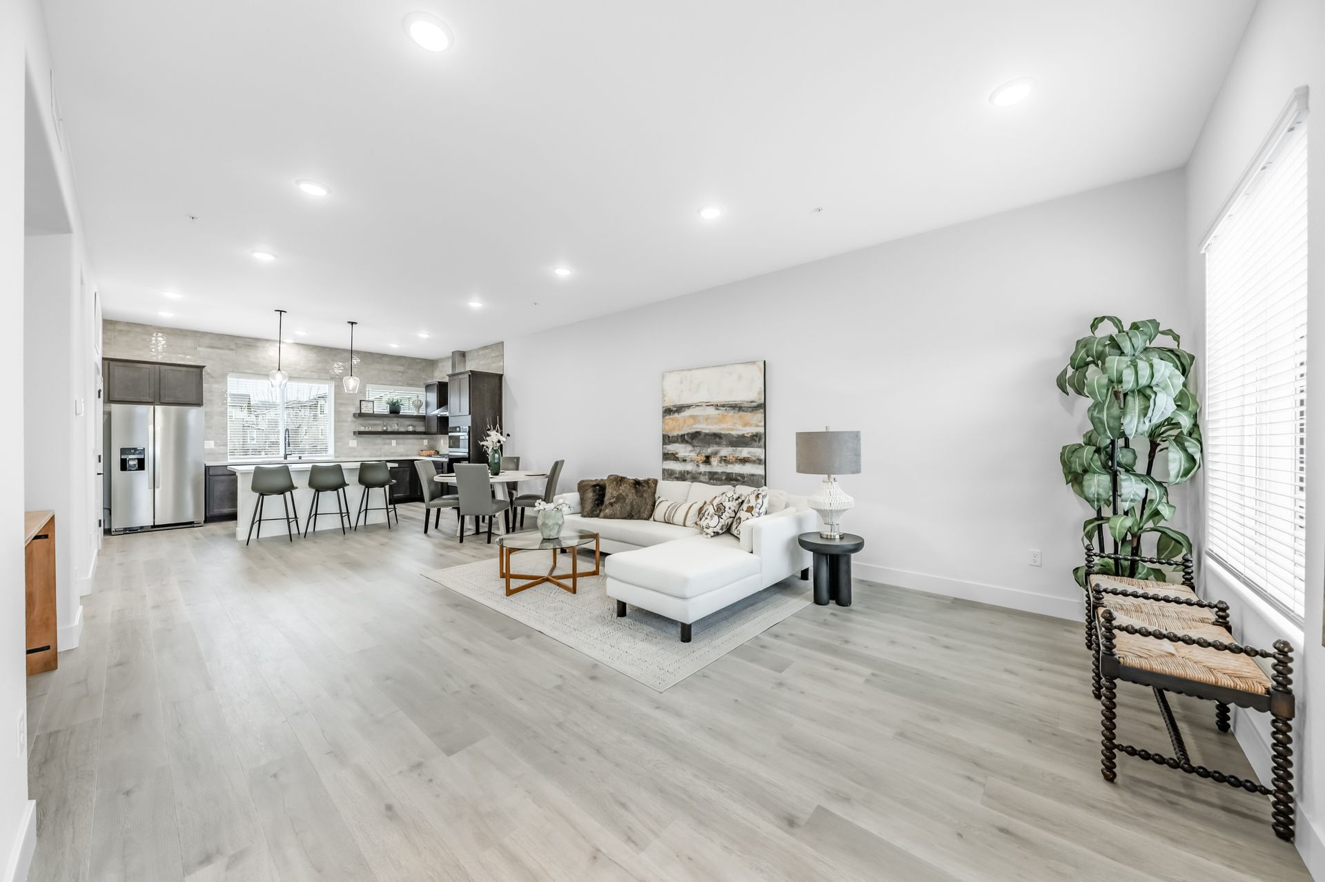 Three-story townhome with 1,810 square feet, 3 bedrooms, 2.5 bathrooms, and an enlarged 2-car garage.