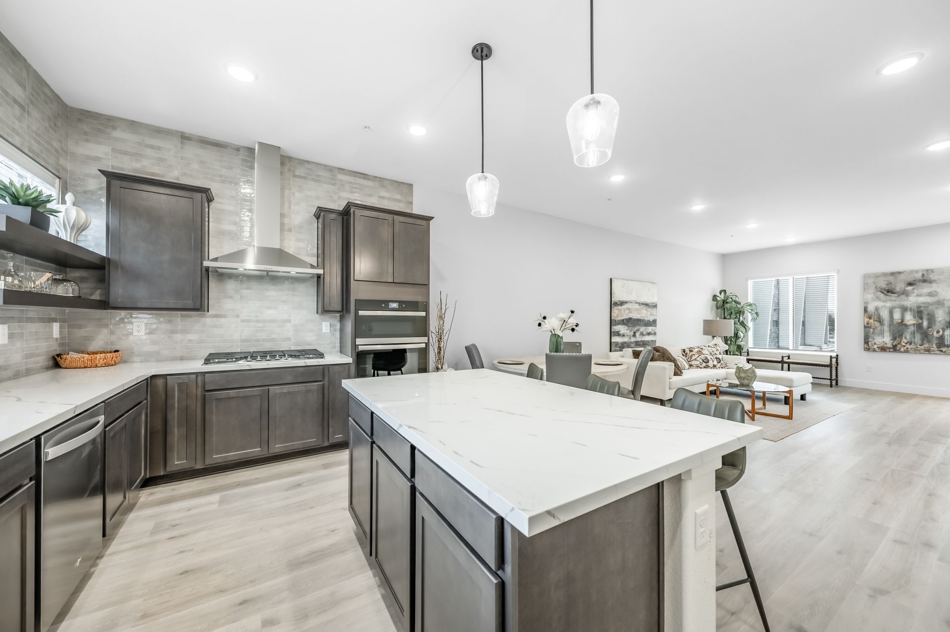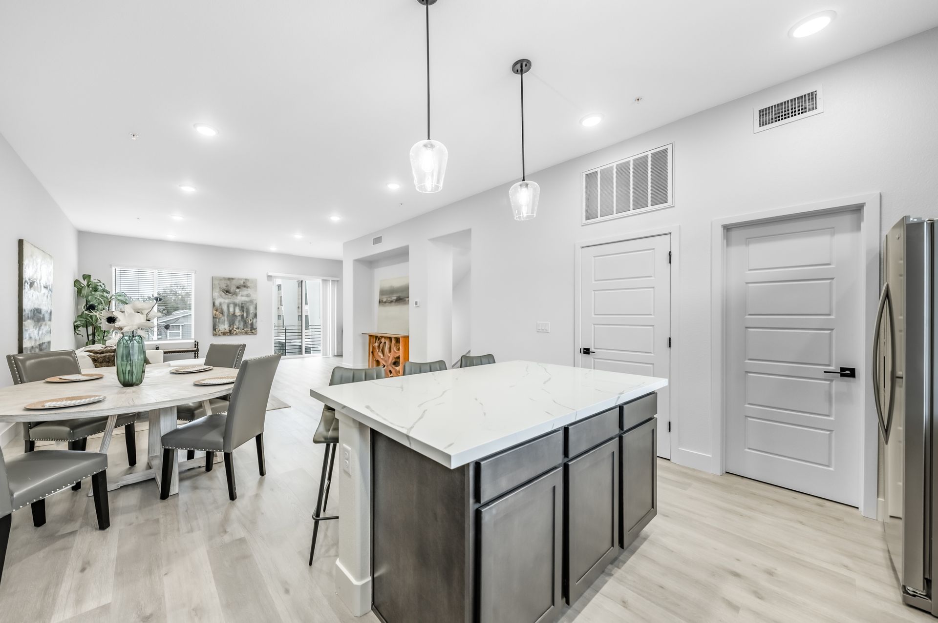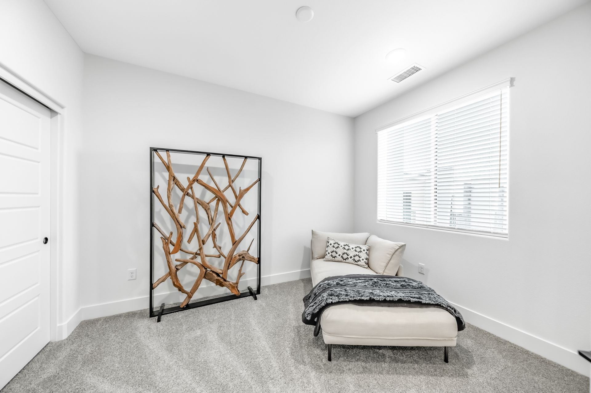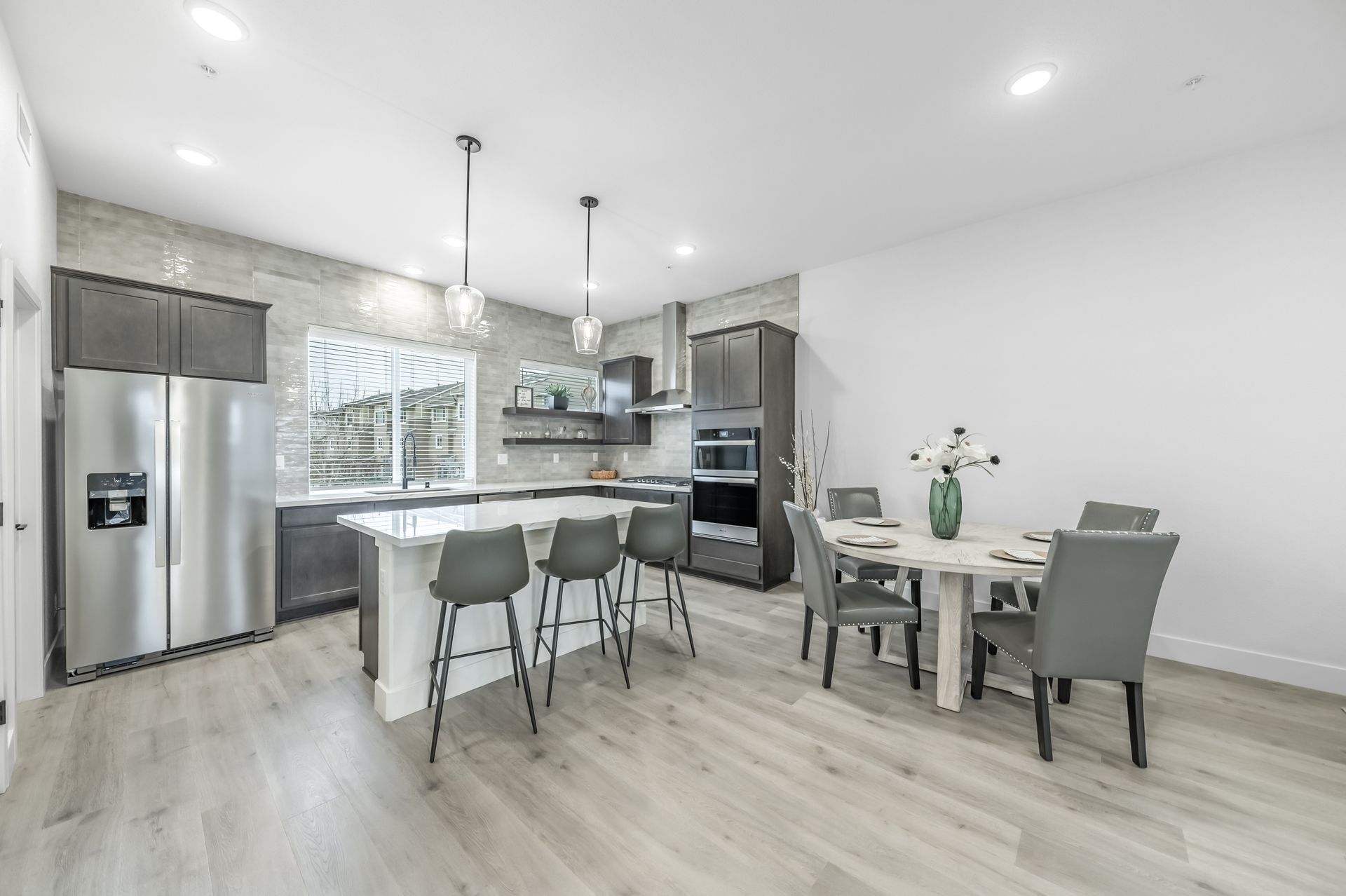 Three-story townhome with 1,810 square feet, 3 bedrooms, 2.5 bathrooms, and an enlarged 2-car garage.