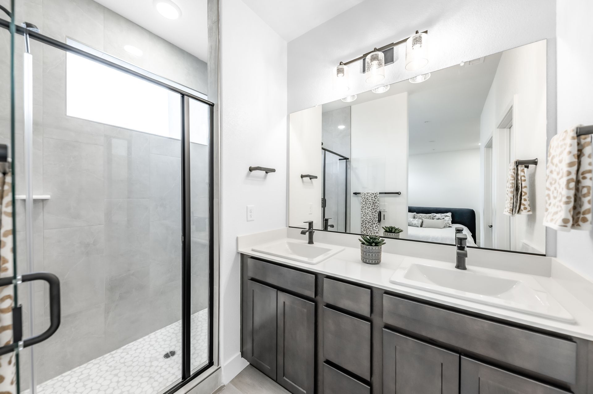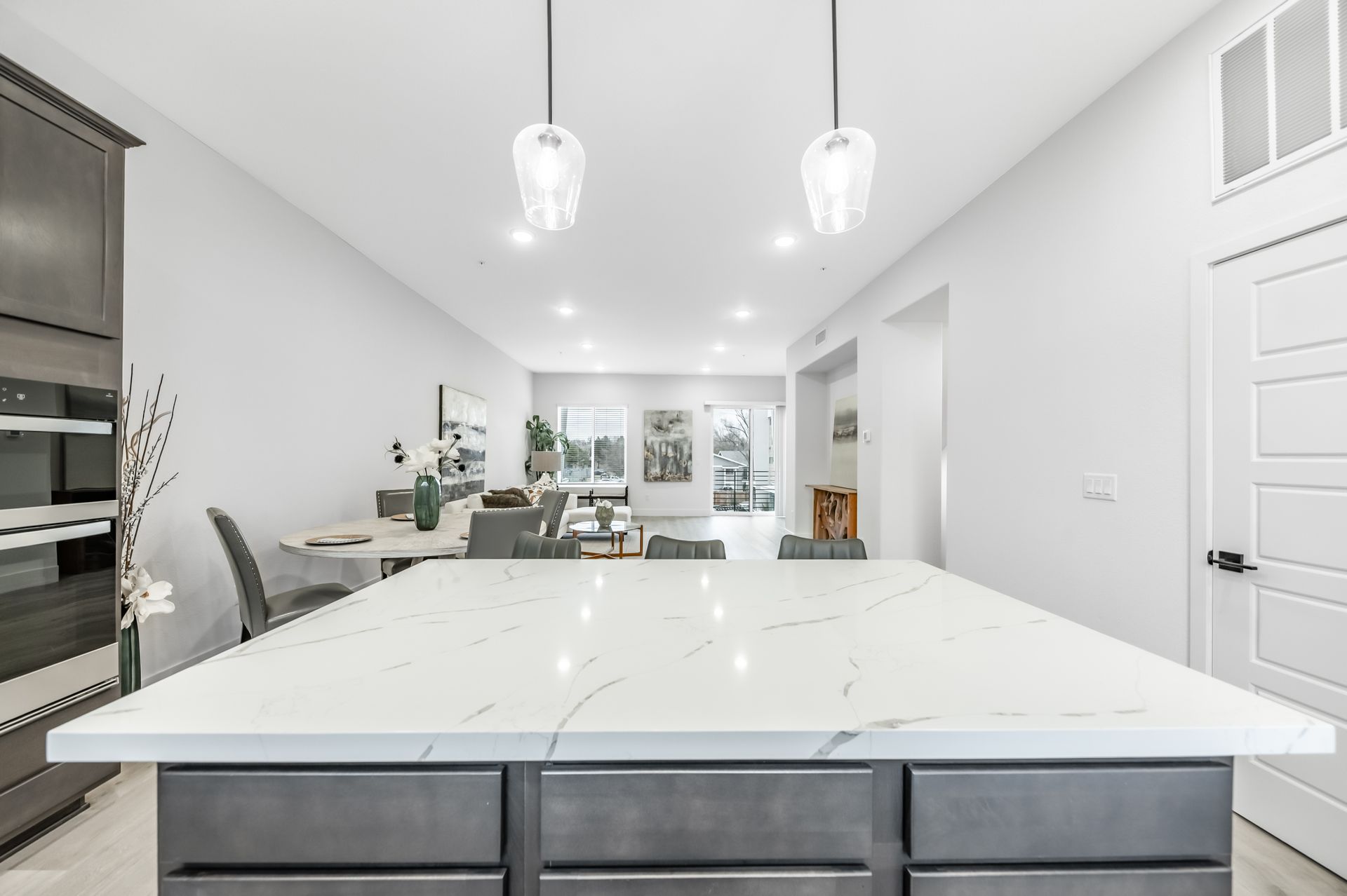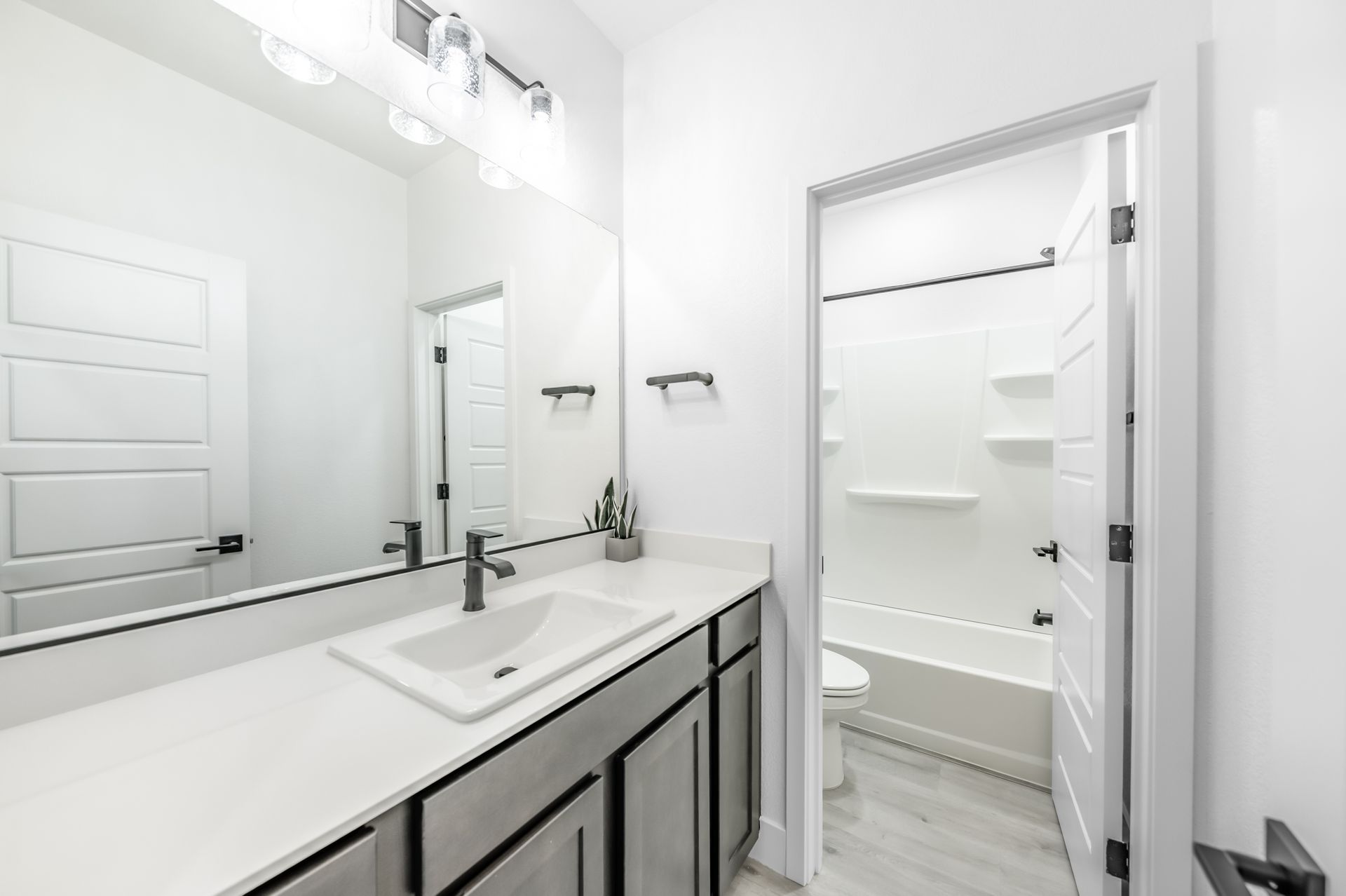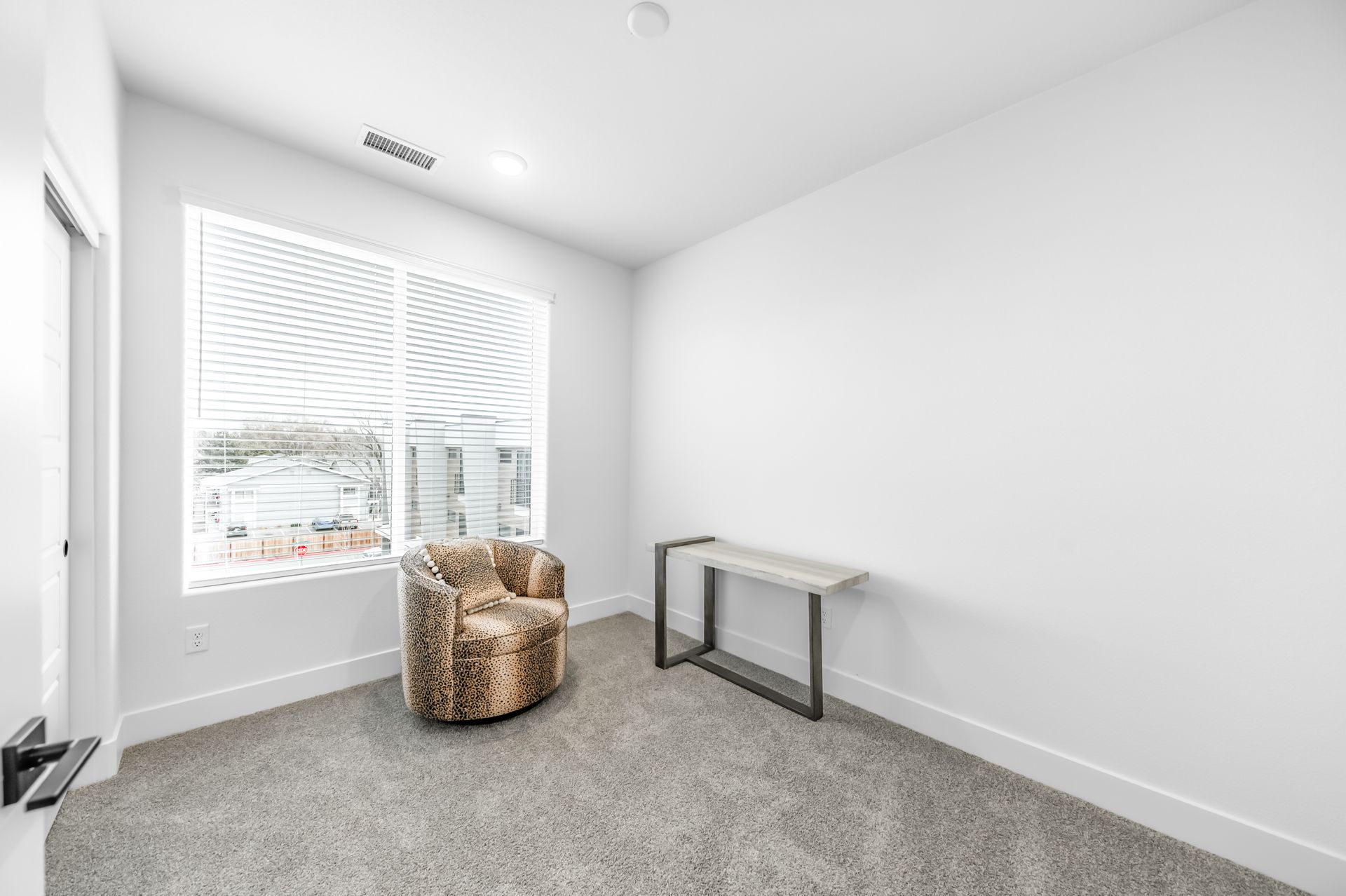 Three-story townhome with 1,810 square feet, 3 bedrooms, 2.5 bathrooms, and an enlarged 2-car garage.