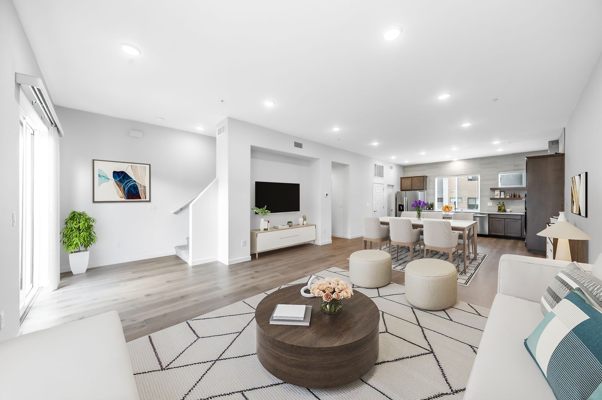 Three-story townhome with 2,044 square feet, 3 bedrooms, 2.5 bathrooms, and a 1-car garage.